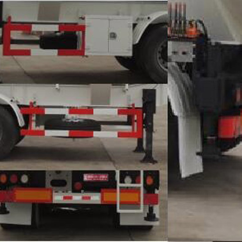 1.頂部封閉不可開槽,后部不可開啟.罐體有效容積:47.7立方米;2.罐體外形尺寸(長×直徑)(mm):10580×2300/2500(前/后);3.側、后防護材料均采用Q235B,側防護用螺栓連接,后防護用焊接連接,后部防護裝置斷面尺寸(寬×高)80×150(mm),后部防護離地高度:550mm;4.ABS生產廠家:威伯科汽車控制系統(中國)有限公司,型號:4005000810 4S2M.