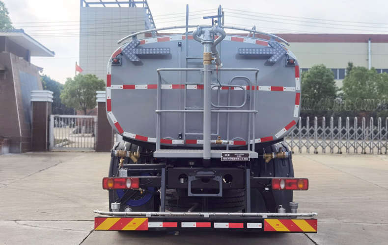 該車專用裝置由高低壓水泵,罐體,噴灑裝置,噴水架等組成,專用功能為道路灑水、沖洗、清洗作業.罐體總容量:9.98立方米,罐體有效容積:9.5立方米.罐體外形尺寸(長×長軸×短軸)(mm):3920×2400×1420.側防護材料為鋁合金,螺栓連接,后防護材料為Q235,螺栓連接,后防護截面尺寸140×60mm,下邊緣離地高460mm.ABS型號/廠家:3631010-C2000/東科克諾爾商用車制動系統(十堰)有限公司,ABS 8/東科克諾爾商用車制動系統(十堰)有限公司,ABS-E 4S/4M/采埃孚商用車系統(青島)有限公司,J ABS/焦作博瑞克控制技術有限公司.僅選用軸距4700,4500mm.該車可選裝前部不帶噴灑裝置.整車外形尺寸長/前伸量/前懸/軸距/后懸對應關系為(mm):9490/860/1400/4700/2530,9490/860/1430/4700/2500,9290/860/1400/4500/2530,9290/860/1430/4500/2500,8630/0/1400/4700/2530,