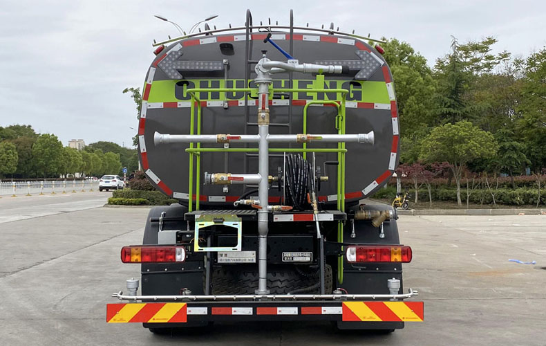 ★清洗車還可加裝灑水裝置,安裝綠化水炮、前沖、后灑、側噴,還可進行綠化灑水、噴霧、壓塵、高壓沖洗路面等,緊急時可用于救火。安裝變速箱側取力器、傳動軸、水泵,管網系統。