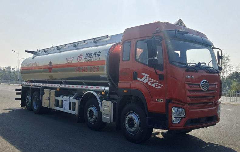 > 產品中心 > 解放油罐車系列 解放油罐車_液罐車_解放前四后六20噸鋁合金運油車★13908669111★楚勝牌CSC5311GYYLCA6A型鋁合金運油車,采用解放CA1320P28K2L6T9BE6A81底盤改裝而成,該車適用于危險品運輸,運送危險貨物車輛類型為:FL型.準運介質zui大密度:830千克/立方米,罐體總容量24.5立方米,罐體有效容積24.1立方米,更多油罐車盡在:m.erssigu.com