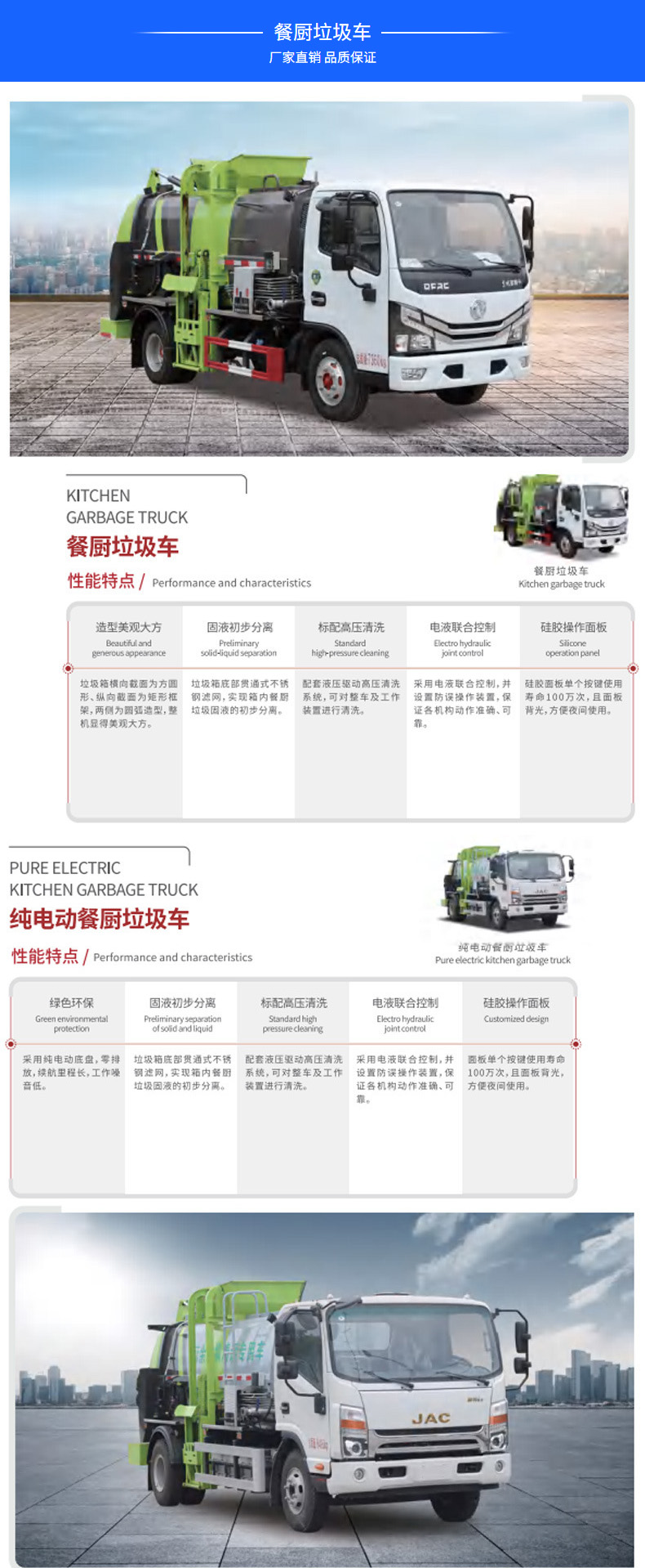 垃圾車價格_純電動垃圾車_東風小型純電動餐廚垃圾車★13908669111★產品名稱CSC5080TCAJH6BEV型純電動餐廚垃圾車,采用東風EQ1080TTZEVJ1底盤改裝而成,該車用于餐廚垃圾收集清運,主要專用裝置為箱體、上料提升機構等組成.標配固液初步分離,垃圾箱底部貫通式不銹鋼濾網,實現箱內餐廚垃圾固液的初步分離。標配高壓清洗配套液壓驅動高壓清洗系統,可對整車及工作裝置進行清洗。更多垃圾車盡在:m.erssigu.com