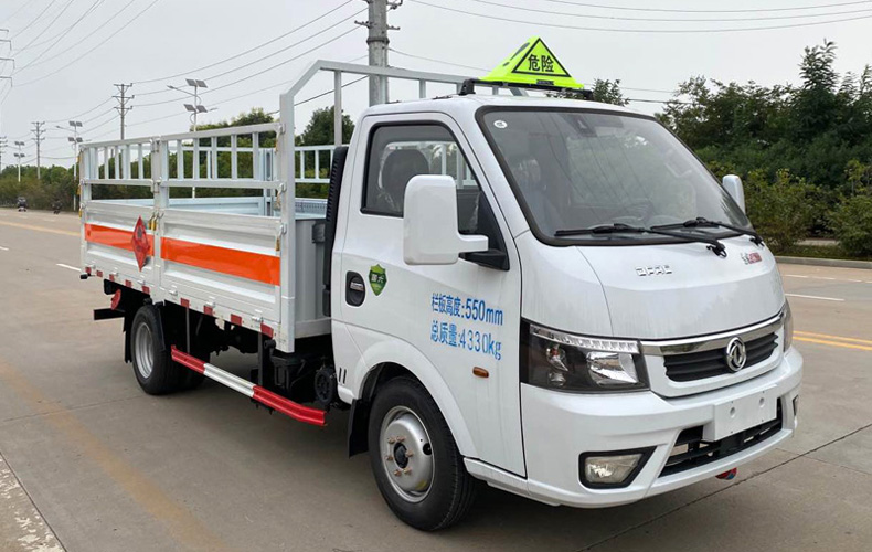 1、該車適用于運輸危險品。類項號:2.1,2.2。2、側(cè),后防護材料均為Q235,焊接連接,截面尺寸100×50mm,下邊緣離地高380mm。選裝無柵欄,選裝貨箱箱板結(jié)構(gòu)。外形尺寸長/軸距/后懸的對應(yīng)關(guān)系(mm):5900/3200/1510,5500/3200/1110,5500/2800/1510,5200/2600/1410,4900/2600/1110。3、選裝后視鏡。僅選用排氣管前置、限速裝置(限速80km/h)、前輪盤式制動及子午線輪胎的底盤,轉(zhuǎn)向輪安裝輪胎爆胎應(yīng)急防護裝置,安裝帶有衛(wèi)星定位功能的行駛記錄儀。選裝ETC。ABS系統(tǒng)型號/生產(chǎn)廠家:ABS/ASR-12V-4S/4M/襄陽東風(fēng)隆誠機械有限責(zé)任公司。5、采用的發(fā)動機與油耗值(L/100Km)對應(yīng)關(guān)系為:Q23-95E60/11.6。整備質(zhì)量包括備胎、滅火器、隨車工具、停車楔。欄板重量:370kg,320kg。材質(zhì)/厚度:底板,碳鋼/3mm;欄板,碳鋼/2mm。
