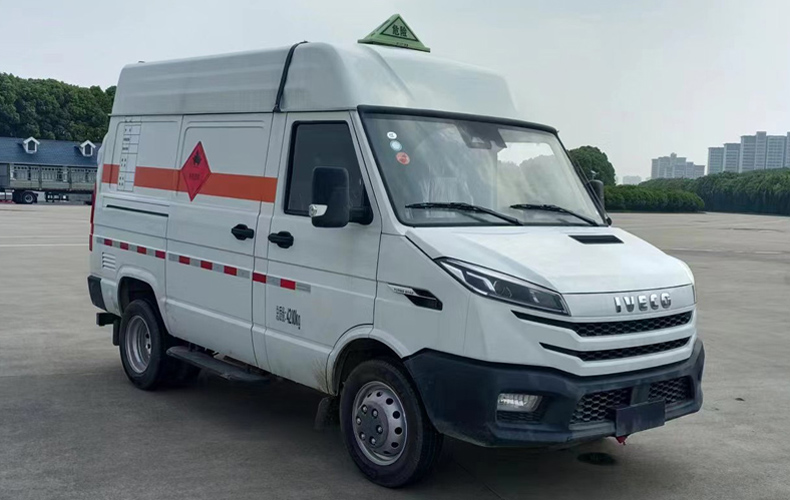該車適用于運輸危險品,運輸具有獨立容器(瓶)包裝的物品,運送危險物品類項號:3.廂體頂部封閉,不可開啟.側防護為車身結構代替,后防護材料為Q235,后防護截面尺寸(mm)100×50,下邊緣離地高370mm.僅選用排氣管前置、前輪盤式制動及子午線輪胎的底盤,轉向輪安裝輪胎爆胎應急防護裝置,前懸架型式為雙擺臂扭桿獨立式,裝備限速裝置,限速80km/h.安裝帶有衛星定位功能的行駛記錄儀.ABS系統型號/生產廠家為:3550B500/浙江亞太機電股份有限公司.發動機/油耗值(L/100km)對應關系為:SOFIM8140.47Z6/10.22.該車可選裝直接供電式ETC車載裝置.整備質量不含備胎,含滅火器及隨車工具.貨廂材質/厚度:外冷軋鋼板/1.5mm,夾層聚氨脂/8mm,內壁玻璃鋼/2mm.貨廂重量為650kg.